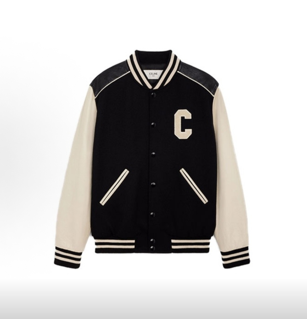 CELINE赛琳 FW21 大C字母Logo学院风棒球夹克 男款 黑色